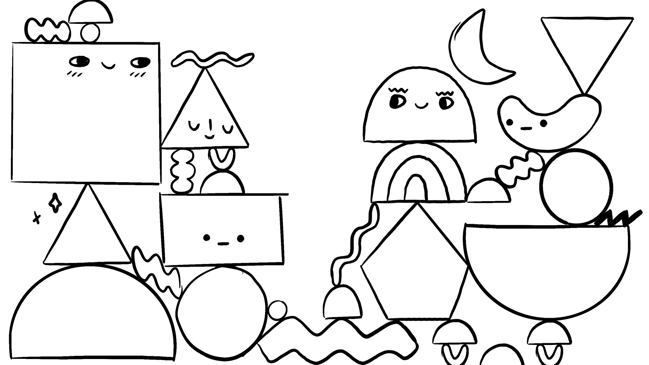 We began by exploring how simple geometric shapes—familiar to toddlers—could evolve into expressive characters and modular building blocks for imaginative play. These sketches helped establish a shape-driven emotional language that would scale across animation, education, and interstitial moments.