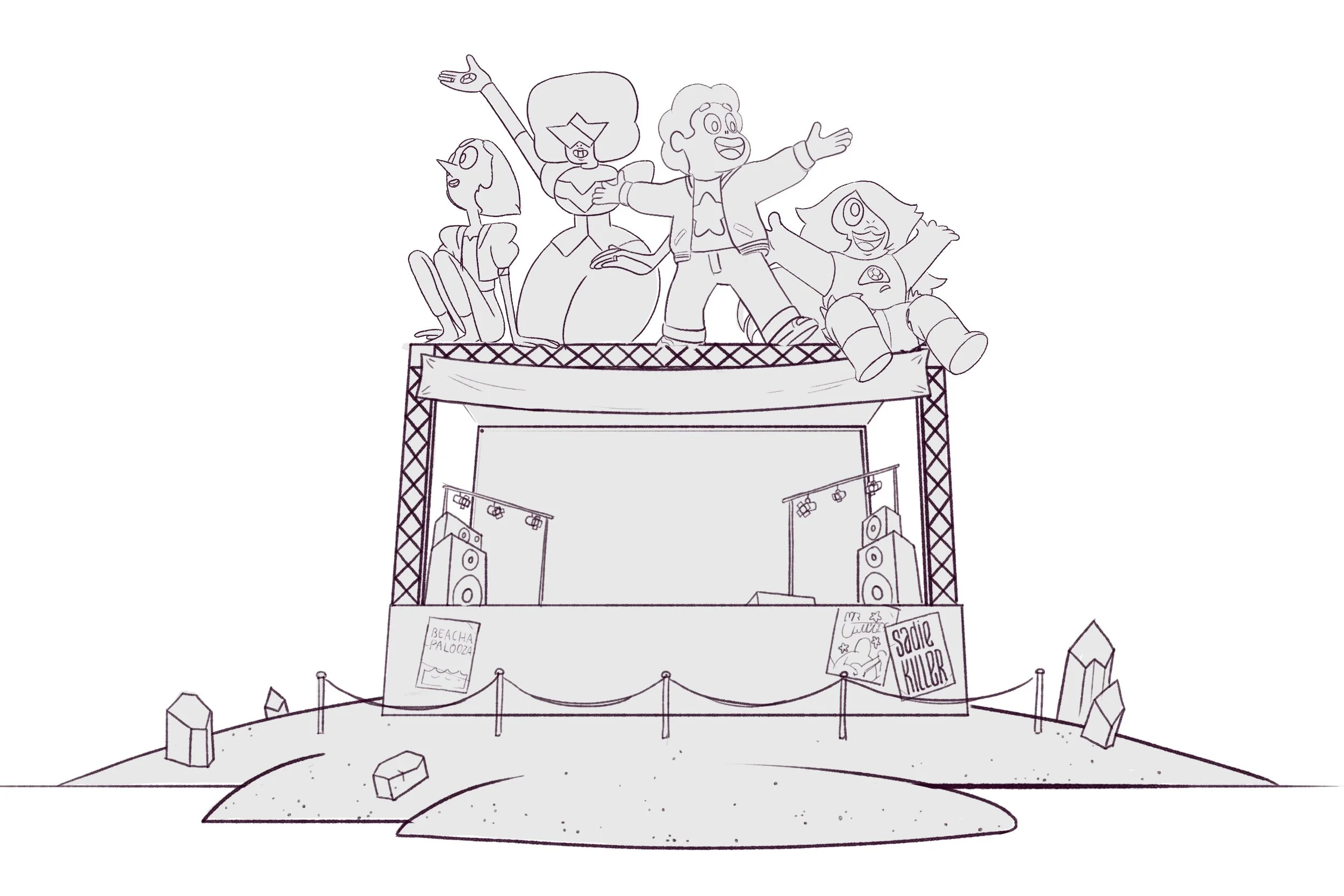 Scope: Co-concepted and creative directed the Steven Universe SDCC activation with the Cartoon Network team. Led concept development and visual direction across the full experience — including character balloons, scenic builds, LED screen graphics, background animations, environmental signage, and press assets — supporting the launch of Steven Universe: The Movie.